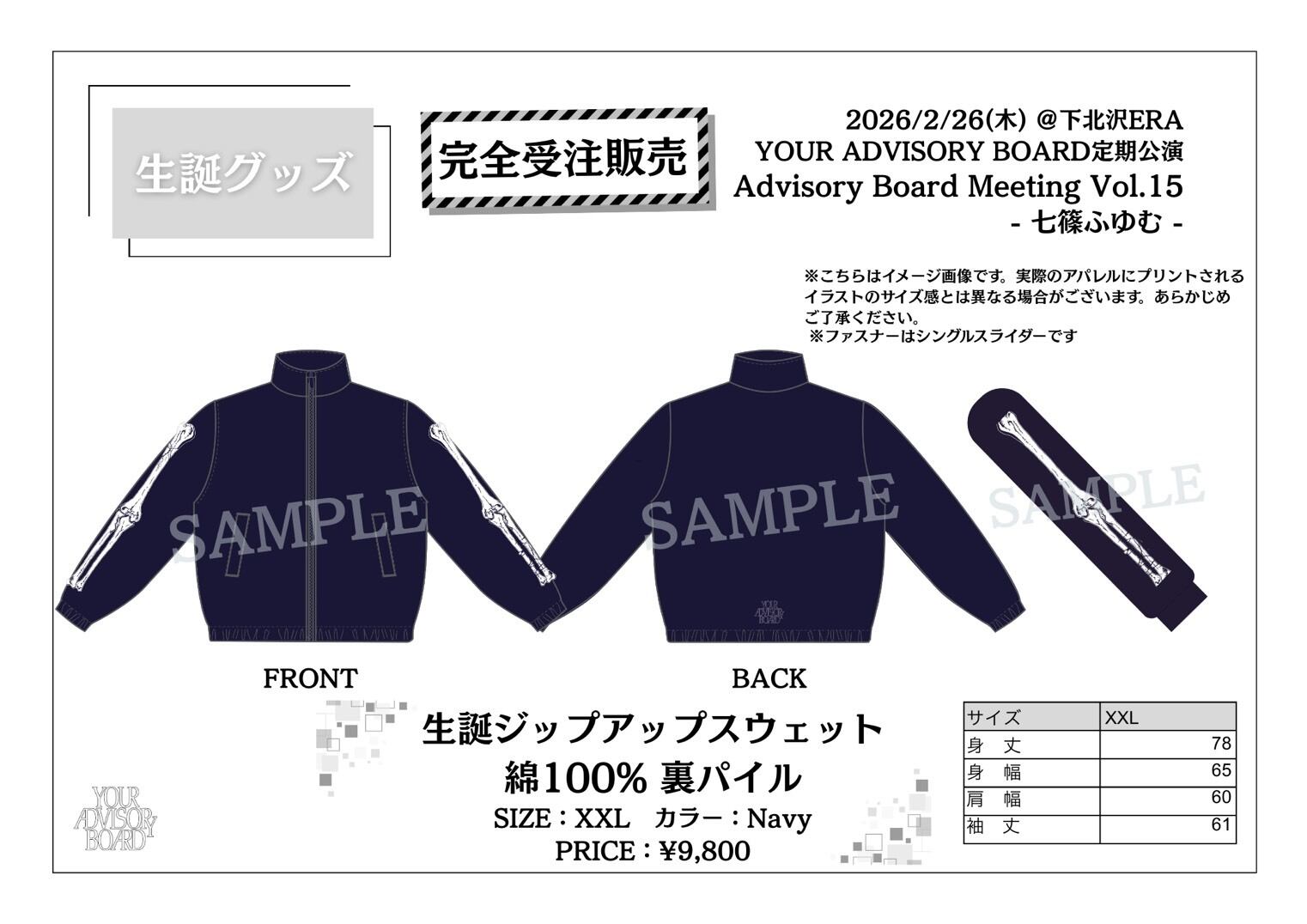 【XXL】【ジップアップスウェット】【生誕グッズ】七篠ふゆむ 生誕ジップアップ(受注販売)